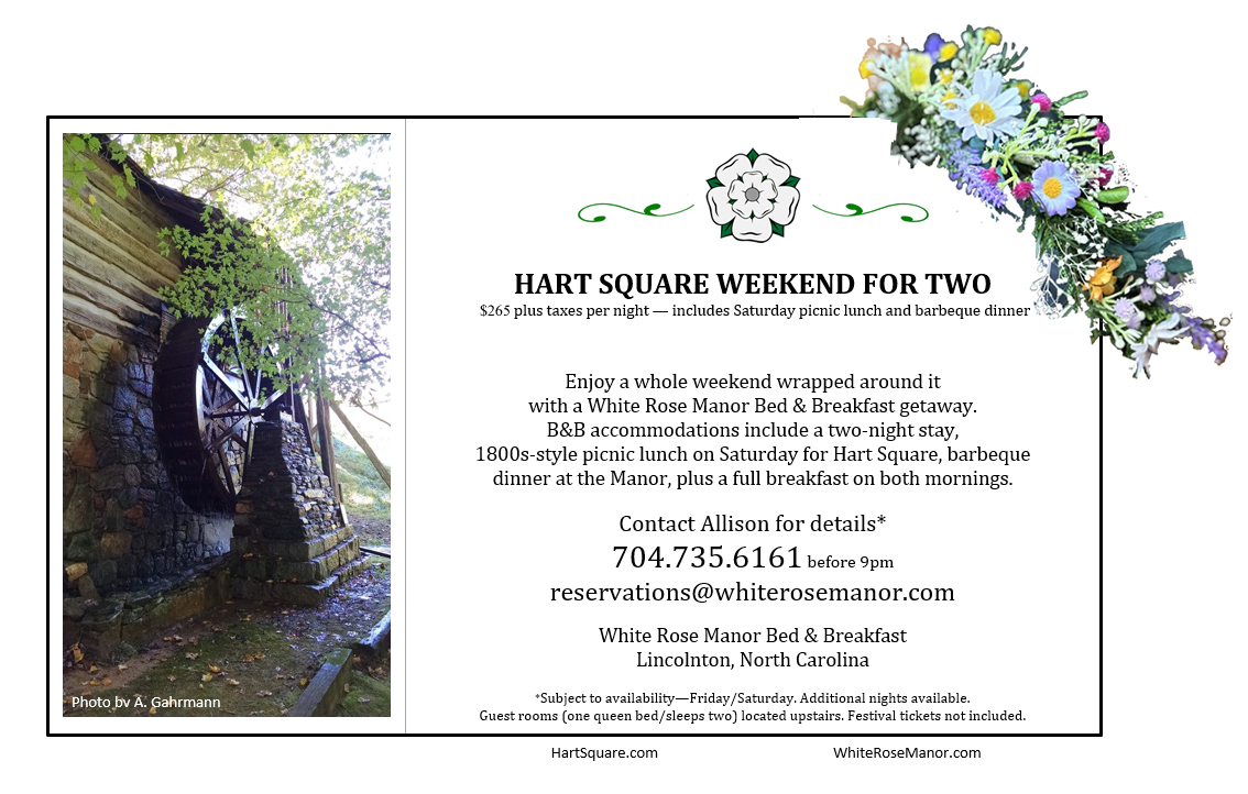 The Hart Square Fall Heritage Festival occurs in October each year. Plan your stay at White Rose Manor and experience a weekend around the festival.